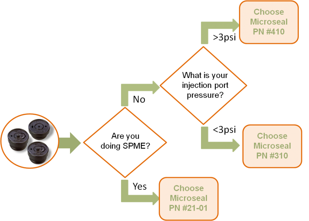 * General Purpose MicroSeal (formerly known as High Pressure MicroSeal) - this is recommended for use in most GC applications with injection port pressures between 3 and 100 psi (20 – 690 Kpa) and injection port temperatures between 50 and 400°C.